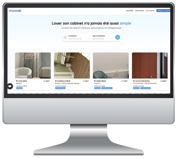 MonCab est une plateforme tout en un pour louer votre cabinet médical : Location de cabinets médicaux, paramédicaux et thérapeutiques.